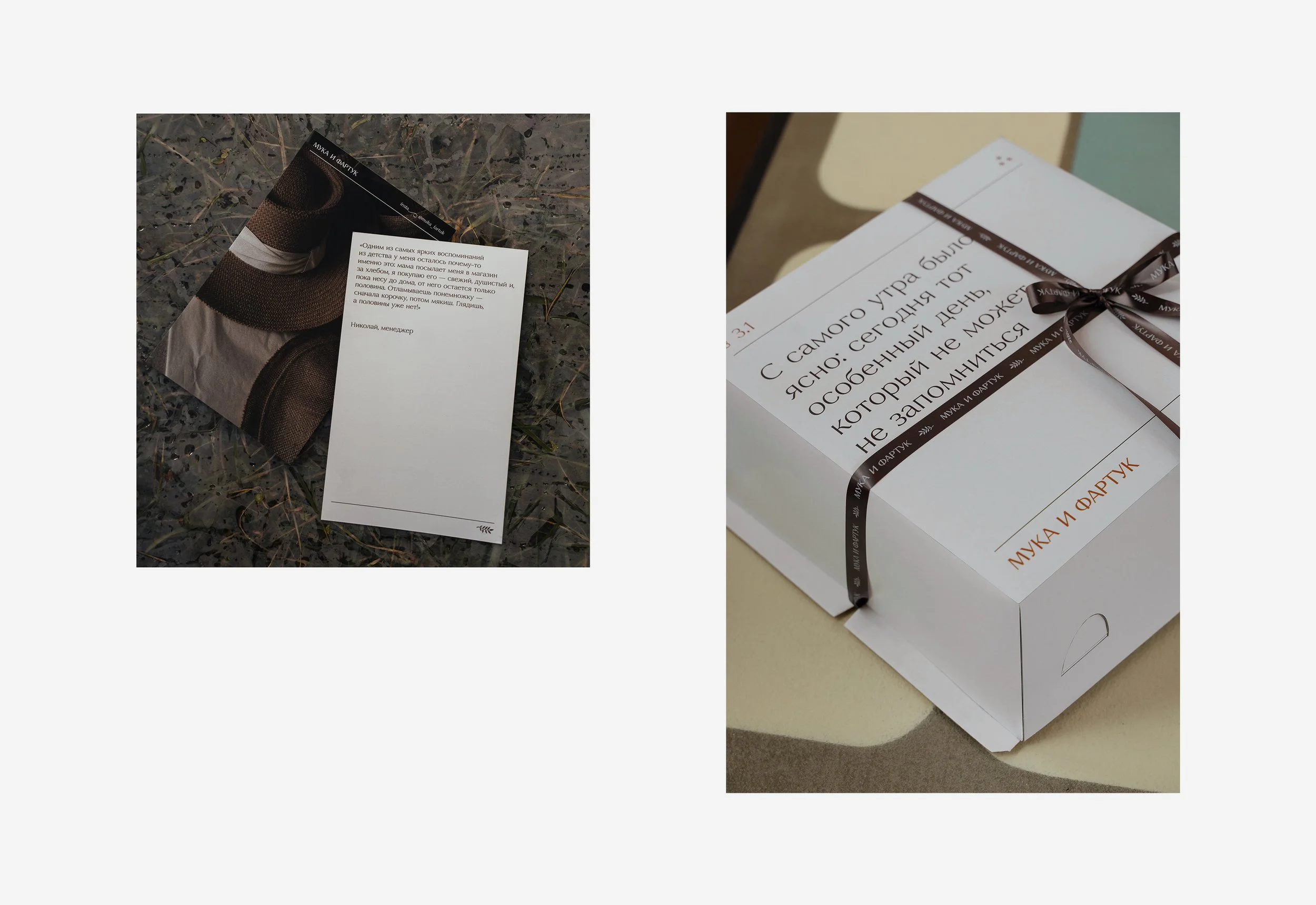 "Flour and Apron" is not only a cozy cafe with breakfasts, lunches, good coffee, but also a store with a large selection of sourdough bread, cakes and puff pastries. The history of bread is the history of our culture – it’s an endless book with many stories which we write throughout our whole lives. This is the metaphor we use to tell tales about bread. The verbal part has become a key part of the project. Basing on it, we started from the idea and developed the logo and corporate identity. The identity of the cafe contains book elements – pages, footers, paragraphs. Nature, concision and timeless values – all are supported in the interior of the bakery.