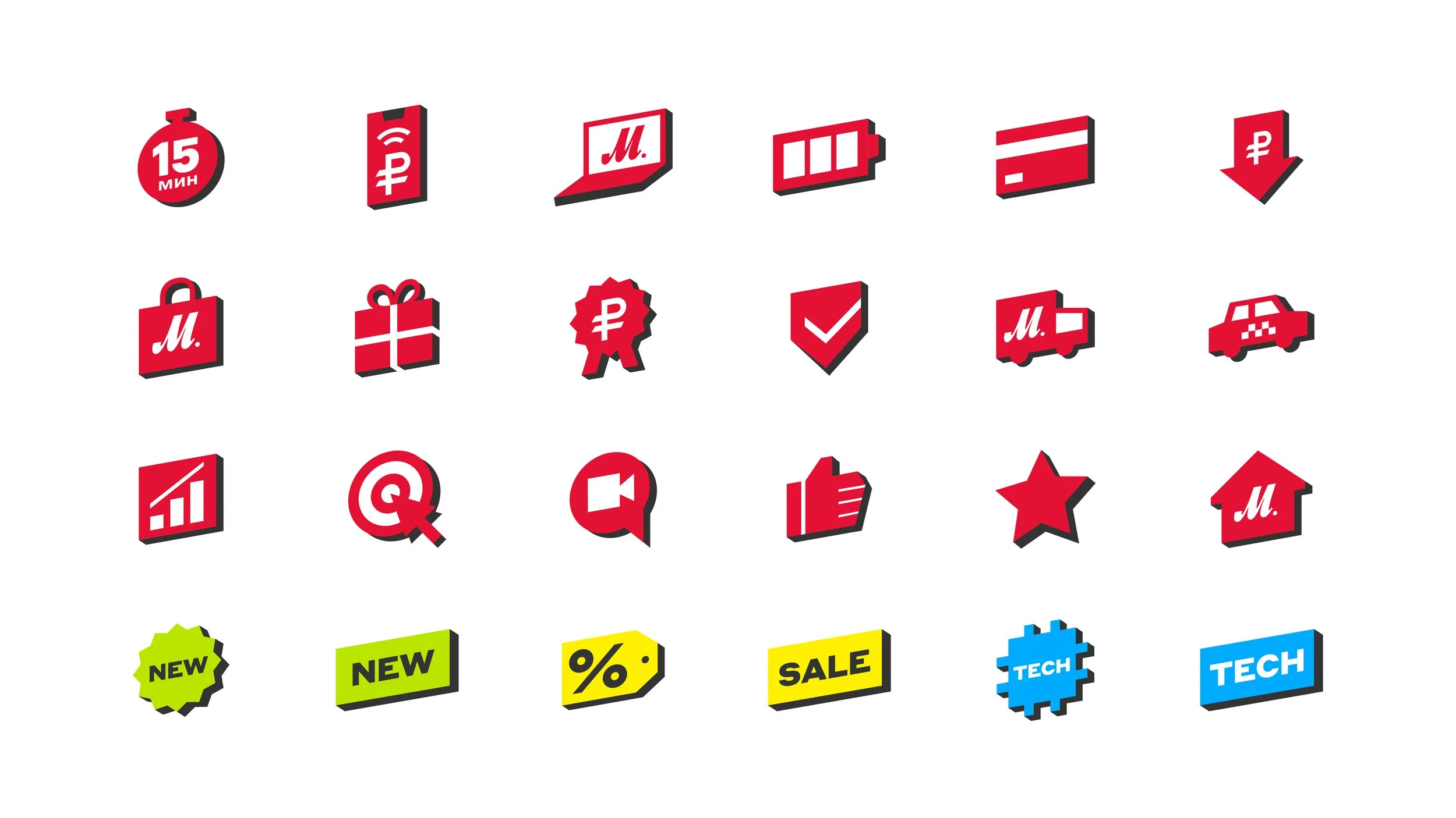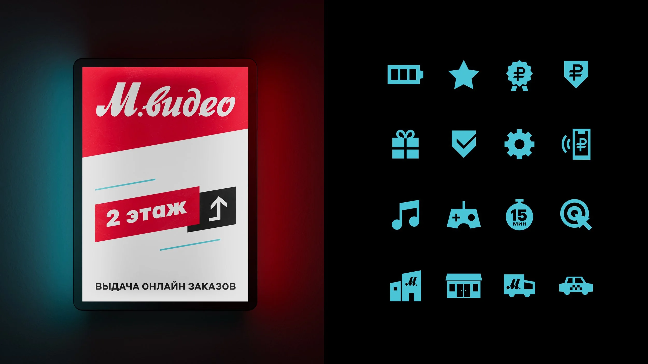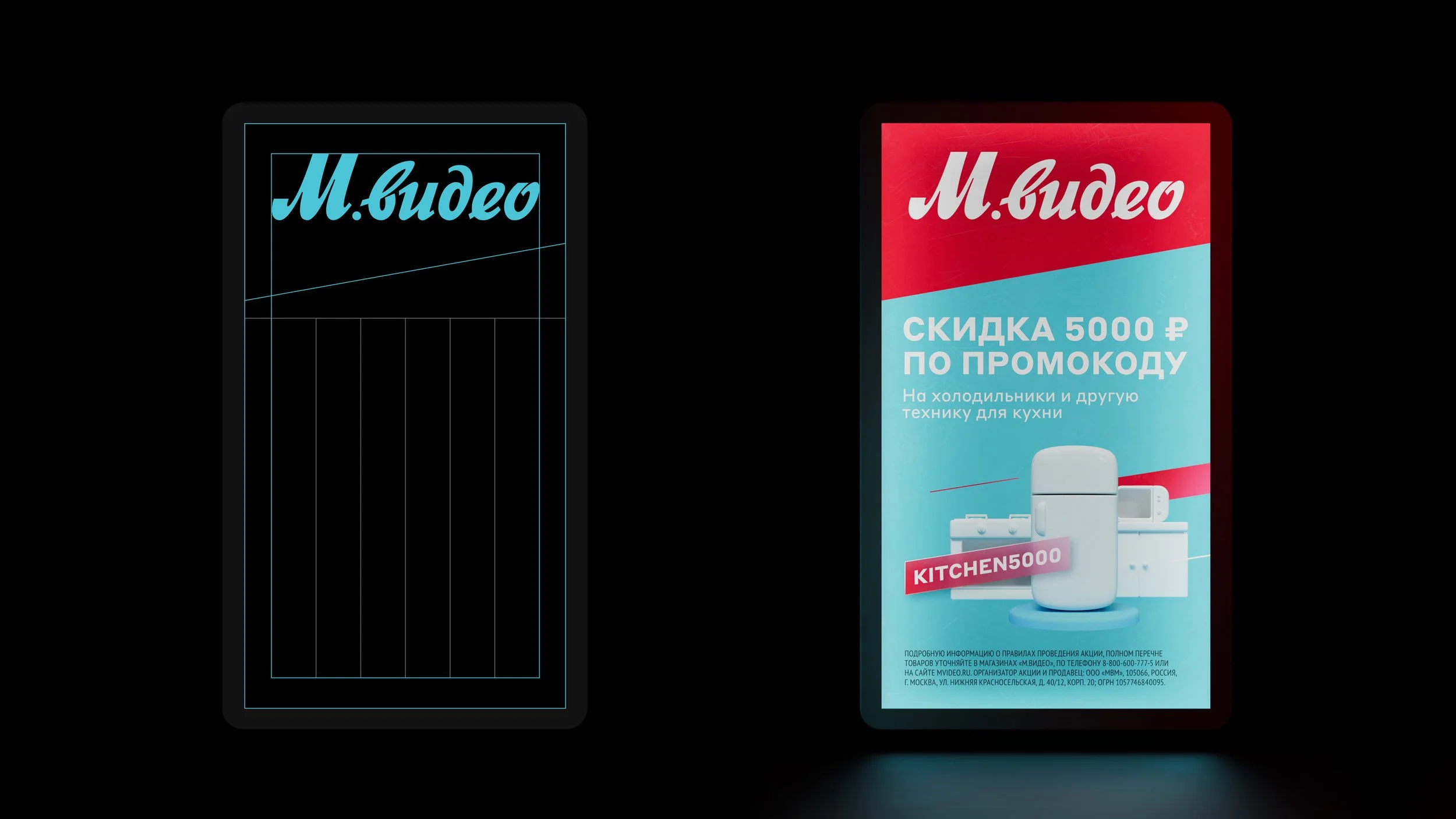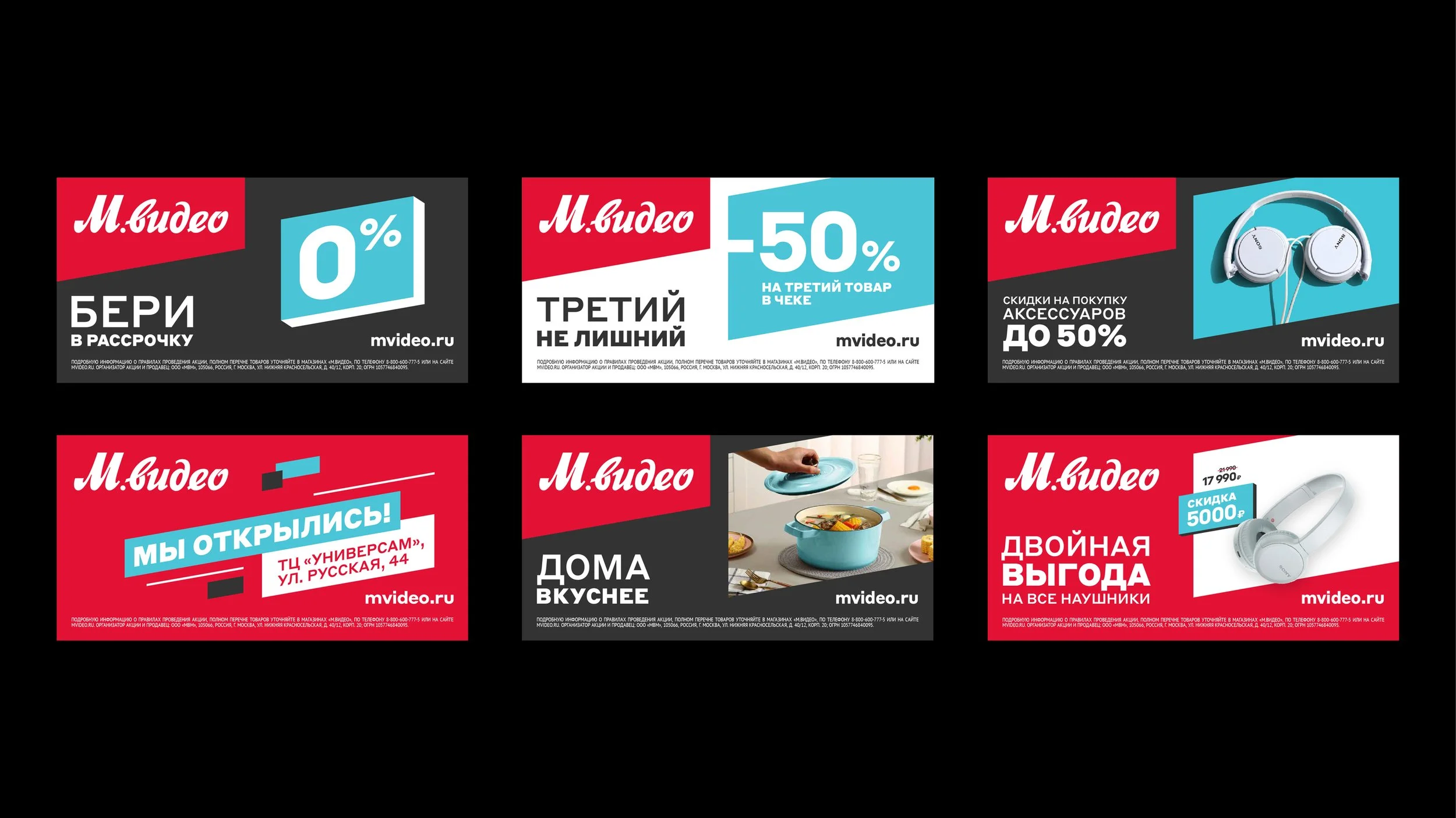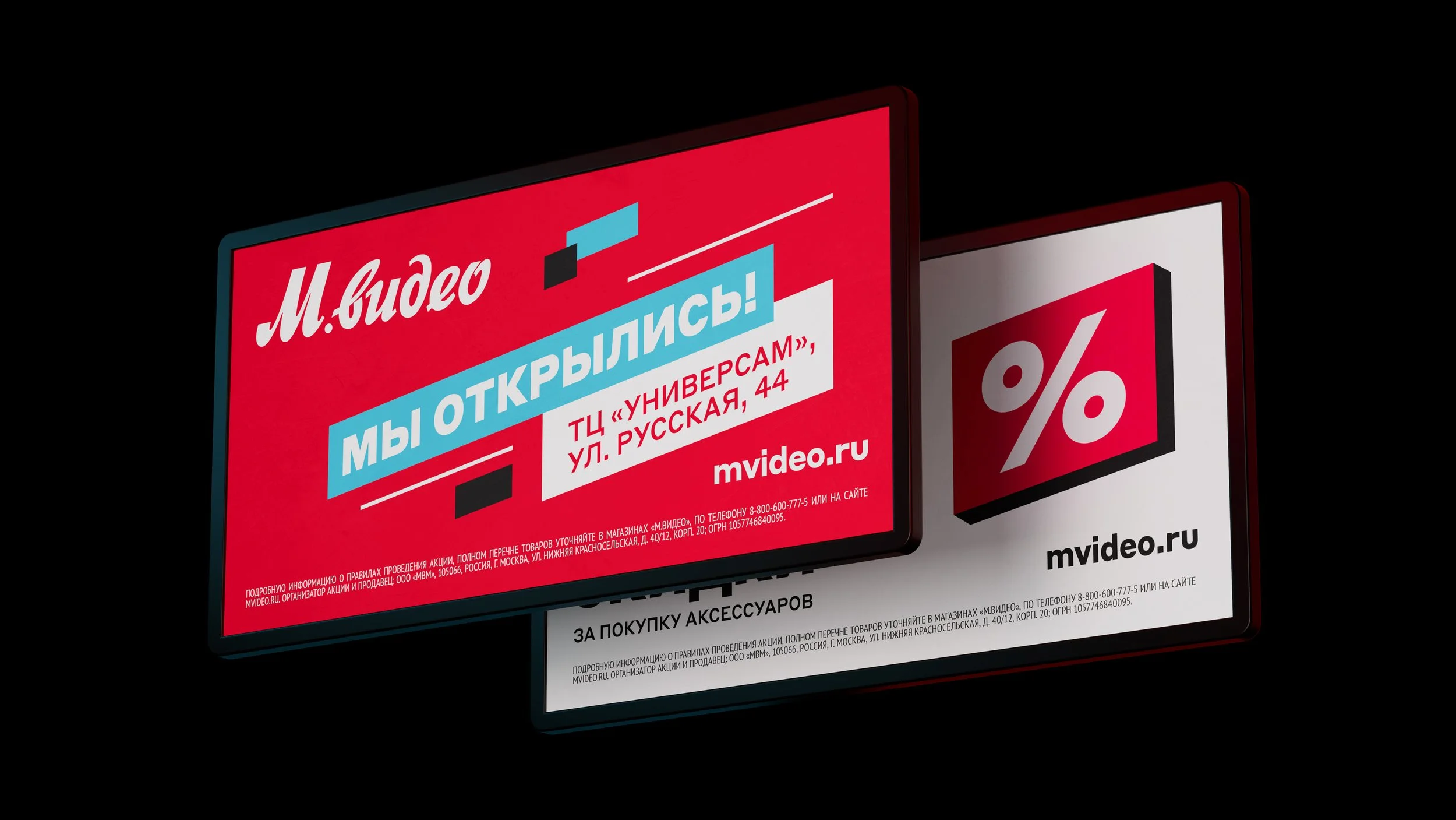 M.Video, in partnership with the LINII agency, updated a new visual style, added colors and graphic elements. We worked out the interconnection of all M.Video communications and, accordingly, the corporate identity that combined offline and online media. The basis of the style was the proprietary diagonal plate, inclined by 10 degrees, which sets the speaker to everything in common. Also introduced a new color scheme offering a complementary turquoise color to the brand's usual red and white color combination.