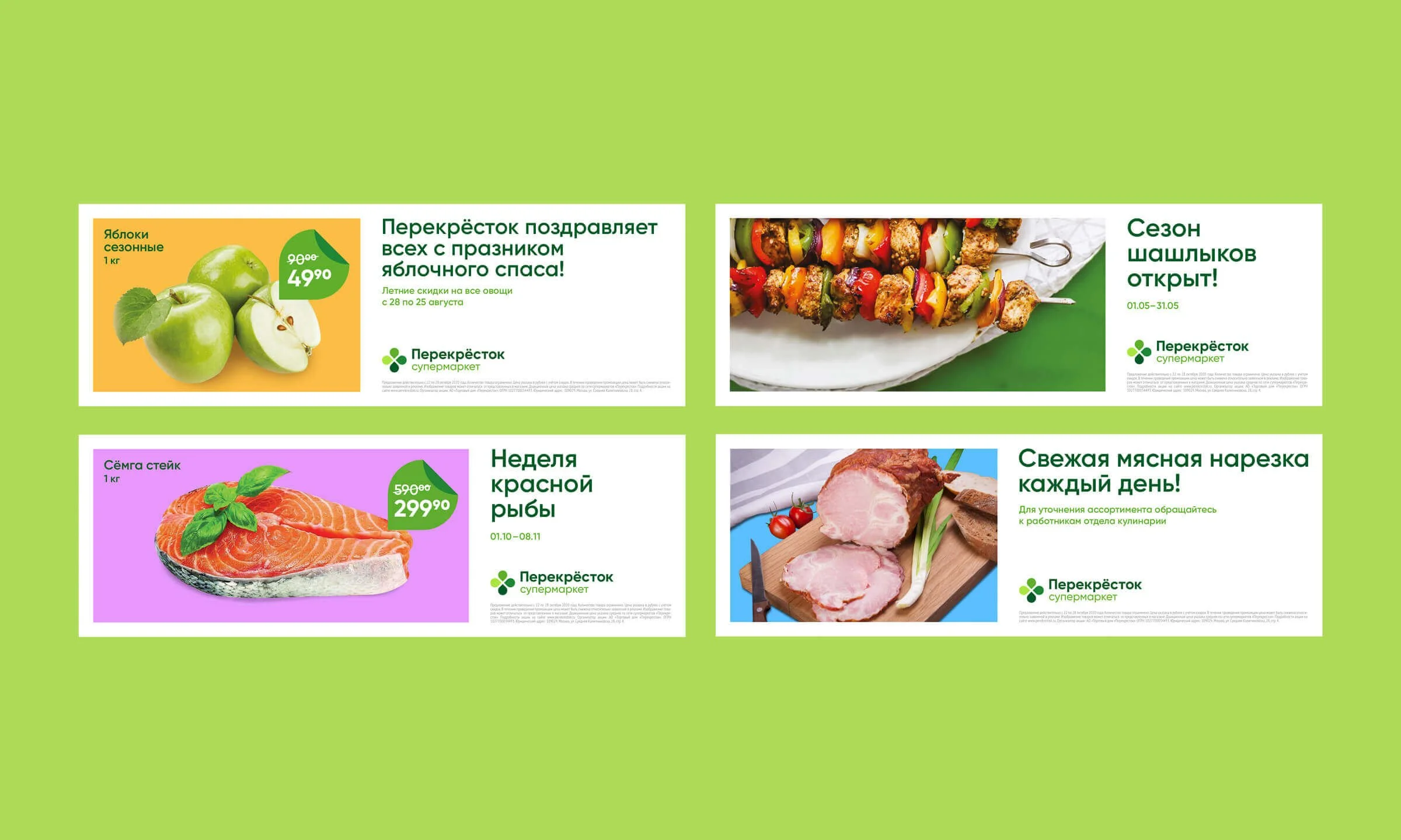 Large-scale rebranding of the Perekrestok chain, timed to coincide with its 25th anniversary. Perekrestok is a modern brand that cares about the freshness and quality of products.
