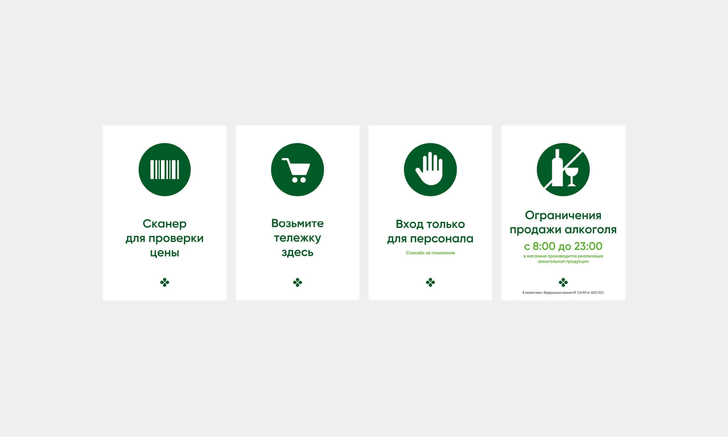 Simple, concise, getting rid of allusions to the road and focusing on images of freshness and greenery, the sign allows you to assemble a whole ecosystem of symbols on its basis. The corporate petal has become an absolute through element for the entire visual communication of the brand. Price tags, illustrations, shelftalkers, patterns, wobblers are now based on a single and recognizable element, thanks to which every style bearer always speaks of belonging to the brand.